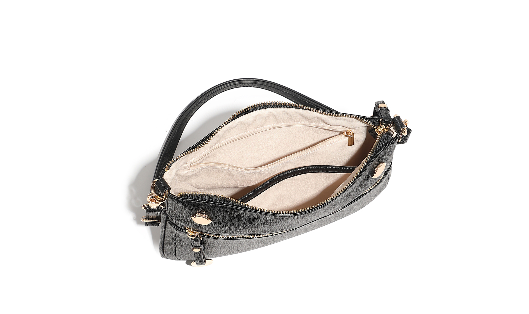 Alla metalldetaljer i guld även det invändiga blixtlåsets dragare, hög färgkvalitet som håller för lång användning.