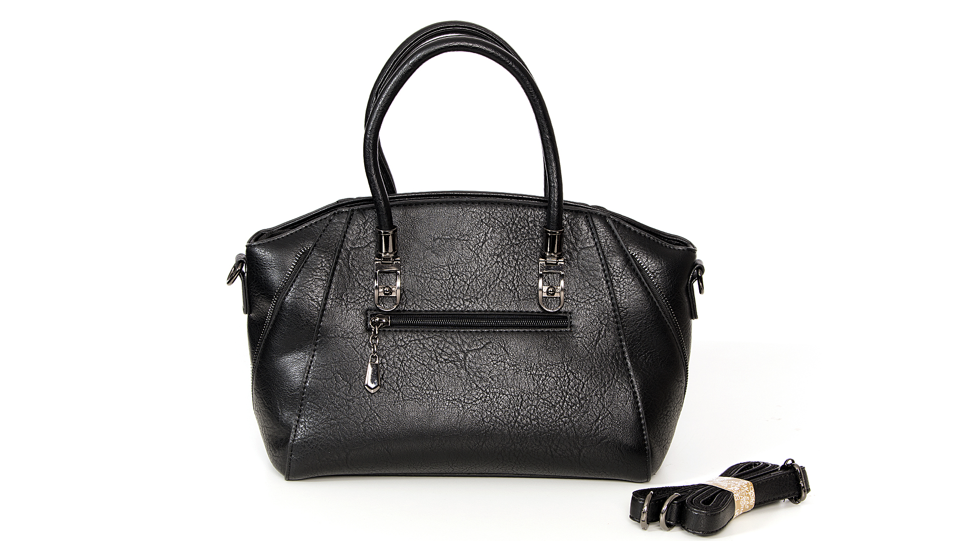 Väskan har ljus inredning.Korta handtag för handen och ett långt band för axel eller att bäras cross-over.