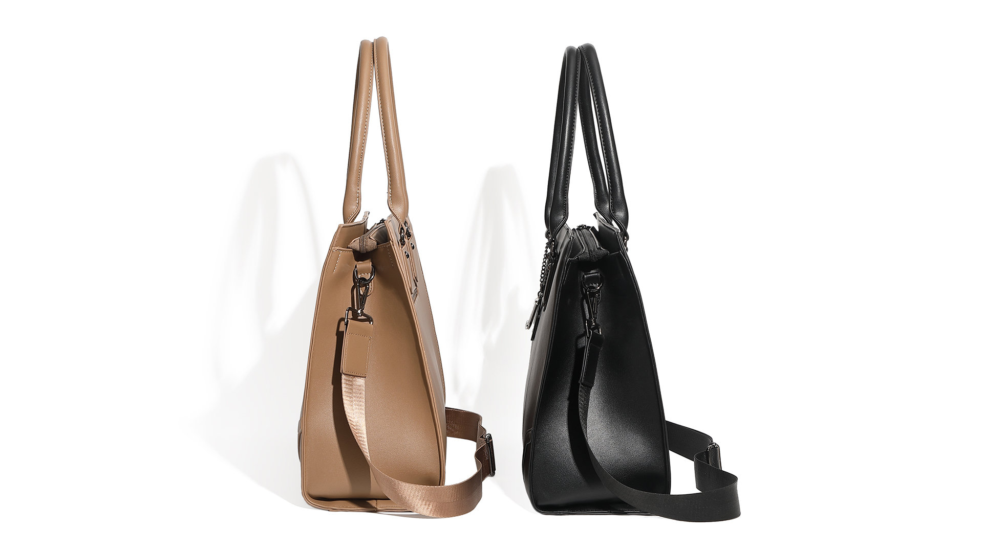 Rundade handtag för bekväm bärning eller att du kan använda det breda långa bandet som ger dig möjlighet att bära väskan över din axel.